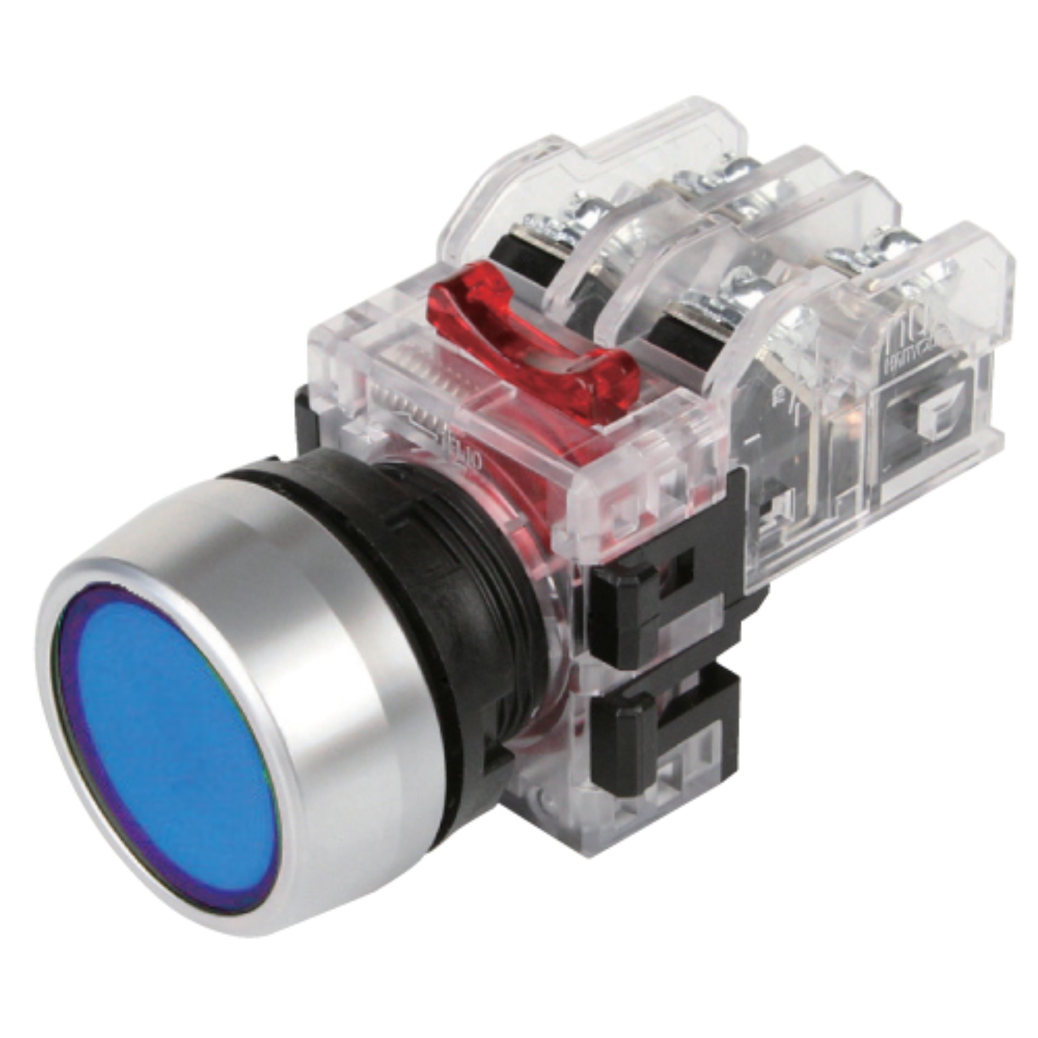 Los botones pulsadores inician o detienen acciones en un circuito eléctrico con presión manual. Comunes en aplicaciones industriales y comerciales, permiten un control simple de maquinaria y sistemas eléctricos.